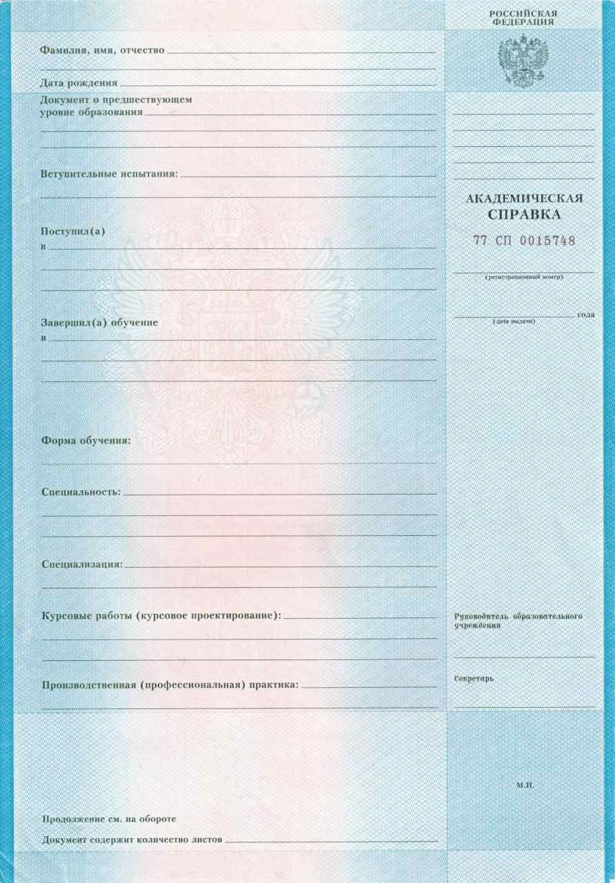 Академическая справка ВУЗ 12010 руб.
